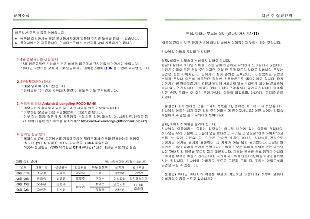 2025년 6월 1일 주보